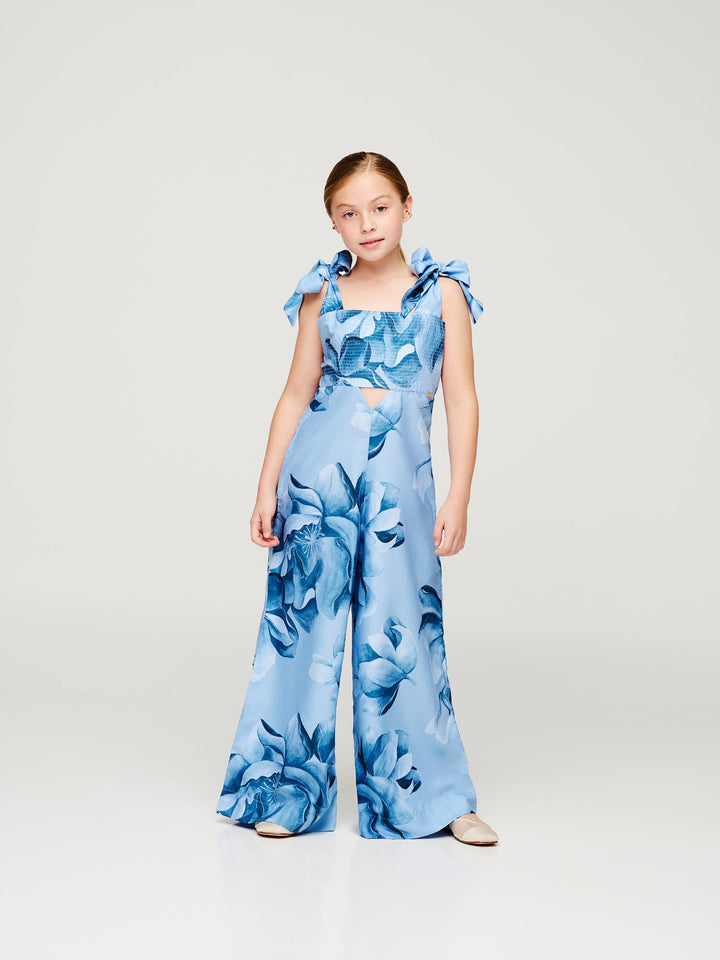Introduce your little one to effortless elegance with our Amaranta Blue Jumpsuit! Featuring a delicate blue print and adjustable bow sleeves, this romper is perfect for a fresh, stylish look. The intricate detailing and V-shaped designs enhance the visual appeal, ensuring a comfortable and secure fit with a back closure. Available in our Mommy and Me collection for coordinating looks with your little one.