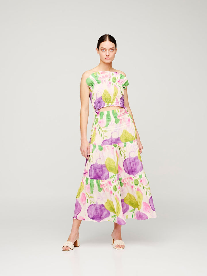 Elevate your style with the CLOE SKIRT MOMMY. Made from matte silk with a botanical print, this long and flowy skirt exudes elegance and modernity. Perfect for any occasion and available in "mommy and me" matching sets. Featuring natural silk for a luxurious touch.